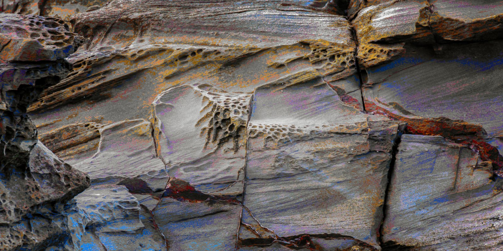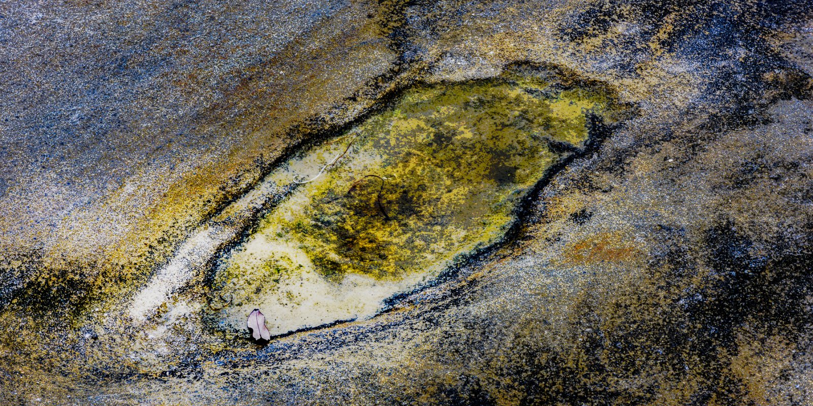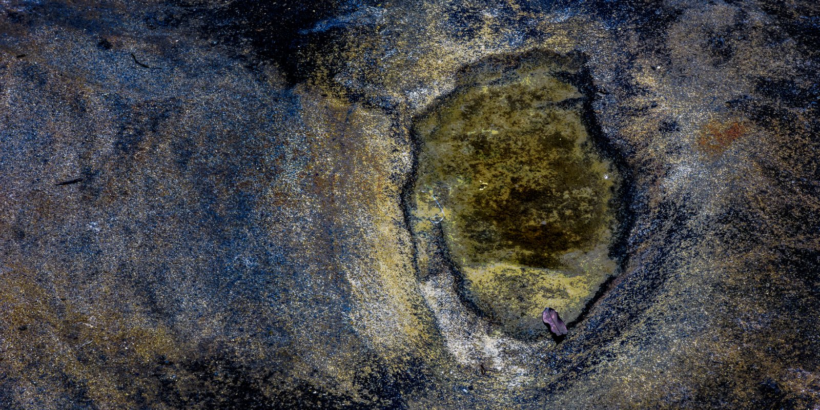 Life needs water to exist, so I headed to the beach and photographed rocks at low tide. These rocks are either submerged at high tide or subject to waves crashing over them. Some have “lakes” of water remaining as the tide has receded.