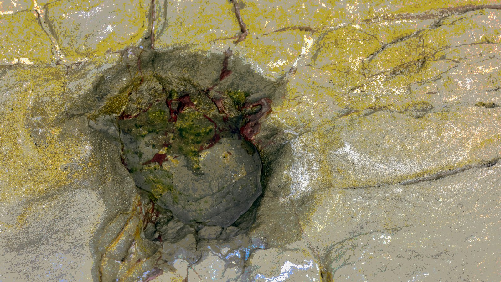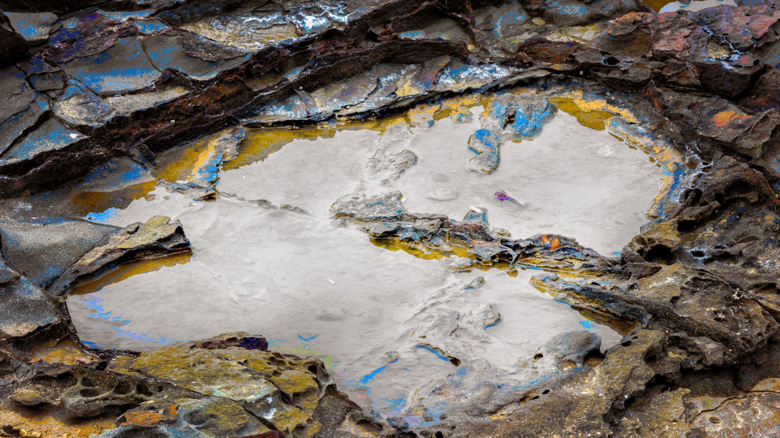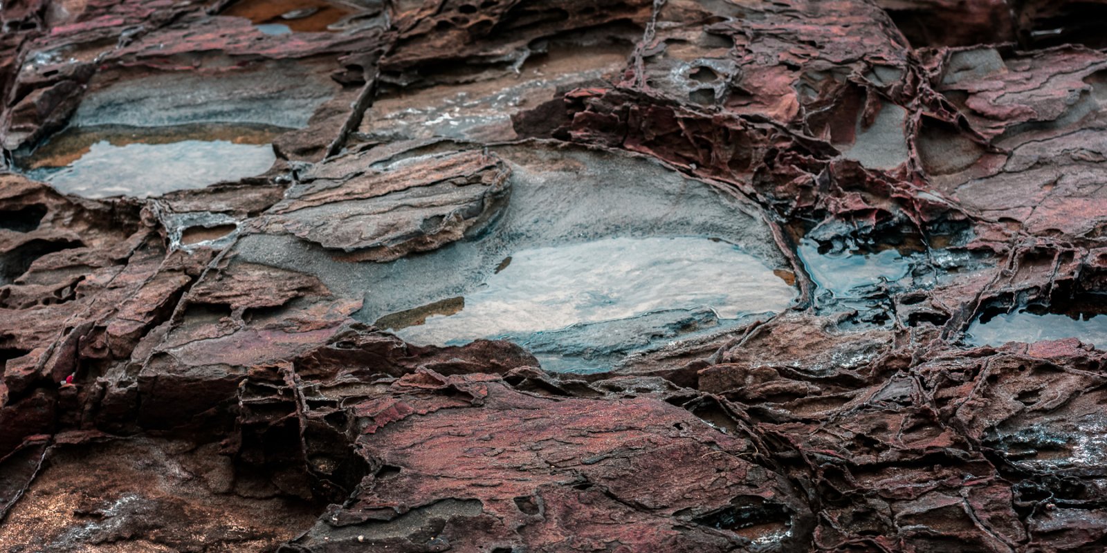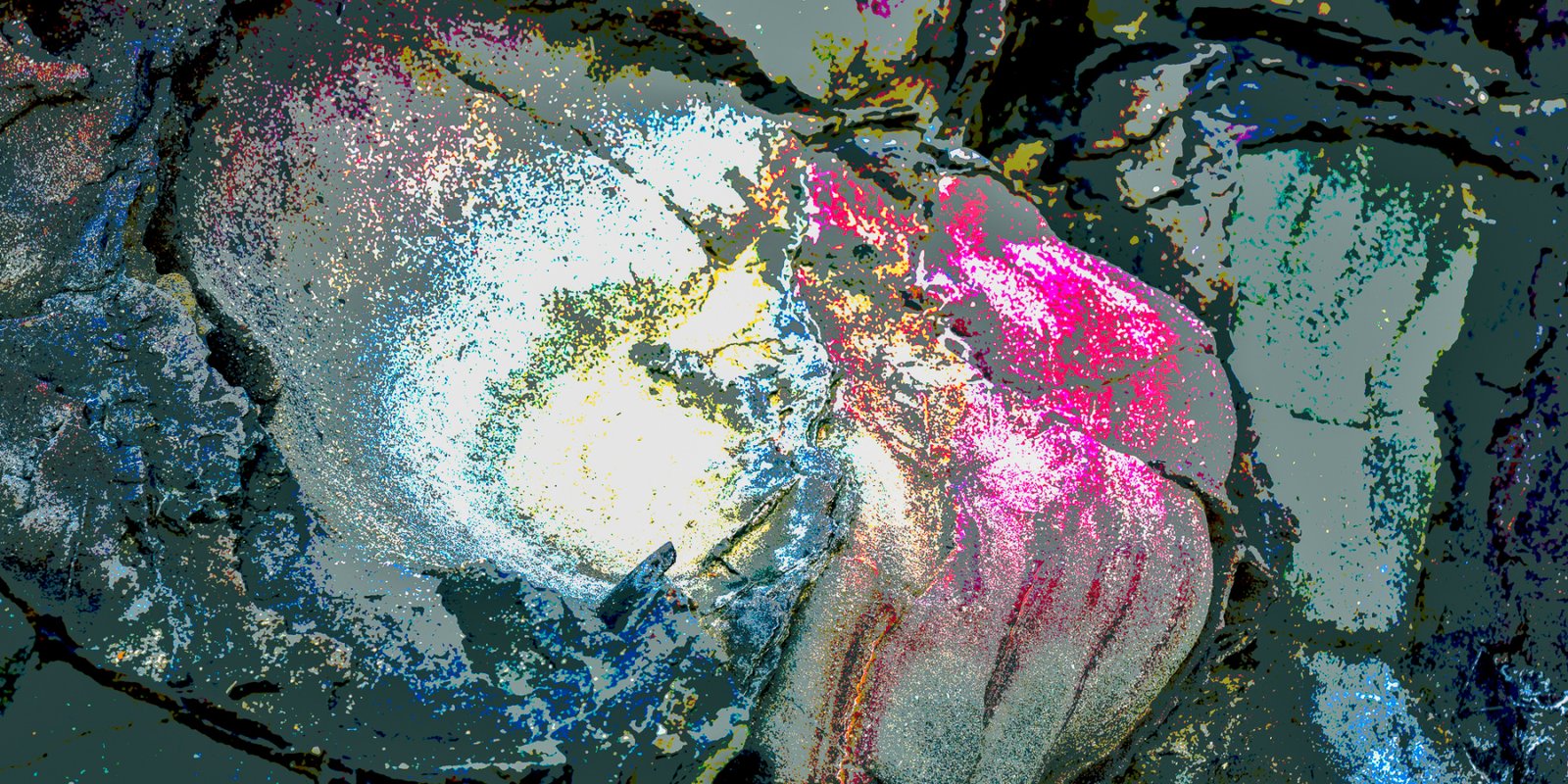 Life needs water to exist, so I headed to the beach and photographed rocks at low tide. These rocks are either submerged at high tide or subject to waves crashing over them. Some have “lakes” of water remaining as the tide has receded.